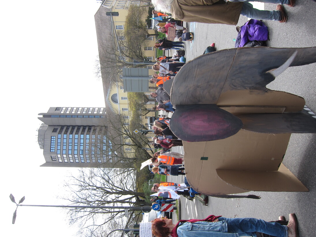 Bei der Ungehorsamen Versammlung am 5.4.2024 steht der Elefant im öffentlichen Raum: das fossile Zeitalter muss endlich durch eine sozial gerechte und solidarische Klimapolitik überwunden werden.